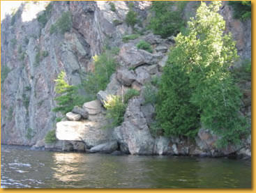 Turtle rock: the vision cave is hidden behind there and 1000 year old red ochre pictographs, dozens of them right at the water level of the cliffs.